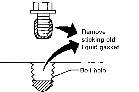 CAUTION: Be sure to wipe off any excessive liquid gasket leaking on surface mating with oil pan (upper).