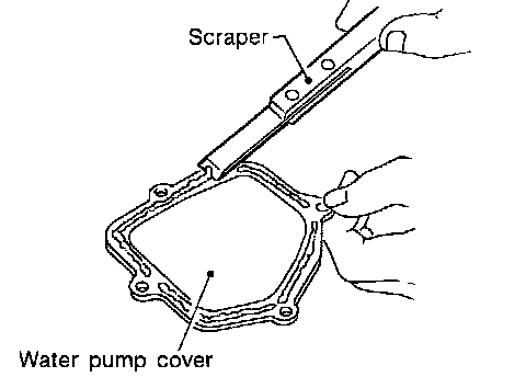 36. Use scraper to remove all traces of liquid gasket from water pump cover, chain tensioner cover and intake valve timing control covers.