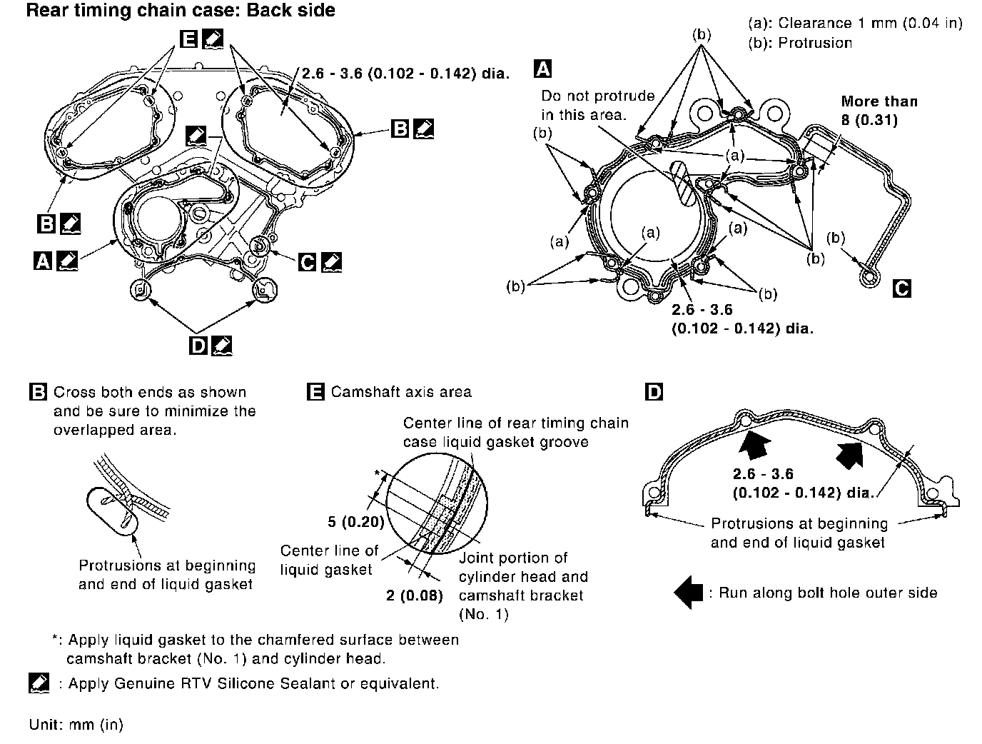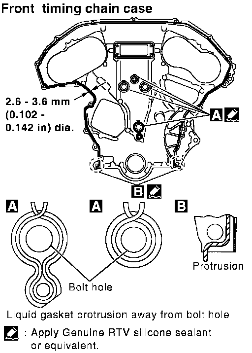 ^ This section describes procedures for removing/installing front timing chain case and timing chain related parts, and rear timing chain case, when oil pan (upper) needs to be removed/installed for engine overhaul, etc.