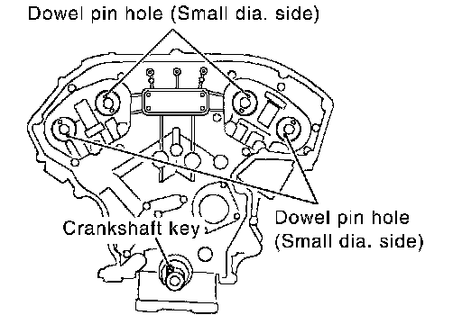 CAUTION: The small dia. side of camshaft dowel pin holes should be used. (The large dia. side is not used.)