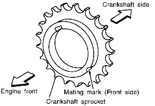 ^ Make sure the mating marks on crankshaft sprocket face the front of engine.
