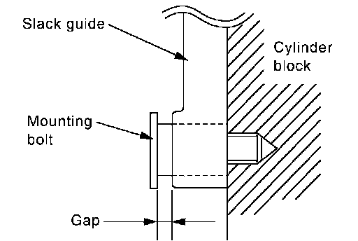 CAUTION: Do not overtighten slack guide mounting bolts. It is normal for a gap to exist under the bolt seats when mounting bolts are tightened to specification.