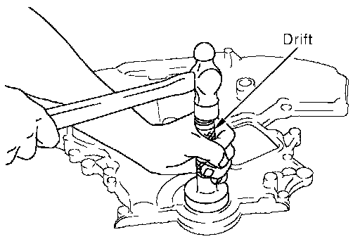 ^ Using suitable drift, press-fit oil seal until it becomes flush with front timing chain case end face.