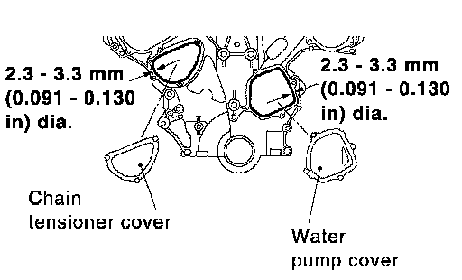 ^ Apply a continuous bead of liquid gasket with tube presser [SST: WS39930000 ( - )] to front timing chain case as shown in the figure.