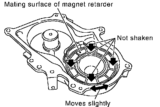 c. To check the joint between dowel pins and dowel pin holes, check the looseness in the axle direction by pushing the mating surface of magnet retarder at several places and the circumferential looseness (between dowel pins and dowel pin holes) by twisting in the circumferential direction.