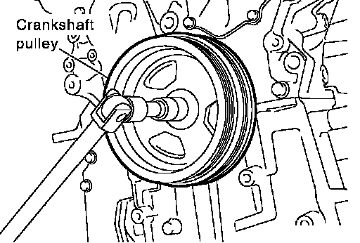 c. Tighten crankshaft pulley bolt.