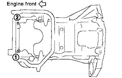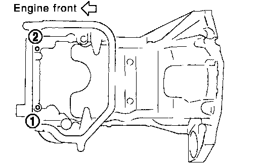 6. Install two mounting bolts in front of oil pan (upper) in numerical order as shown in the figure.