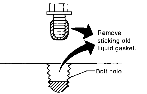 ^ Remove old liquid gasket from bolt hole and thread.