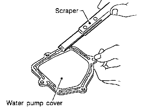 29. Use scraper to remove all traces of liquid gasket from water pump cover, chain tensioner cover and intake valve timing control covers.