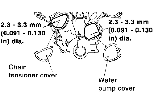 4. Install water pump cover and chain tensioner cover to front timing chain case.