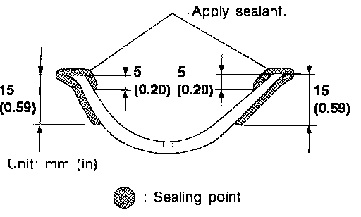 ^ Apply liquid gasket to top surface of oil pan (upper) as shown in the figure.