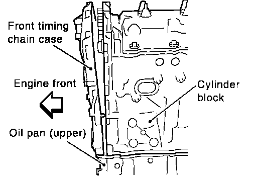 ^ This section describes removal/installation procedure of front timing chain case and timing chain (primary) related parts without removing oil pan (upper) on vehicle.