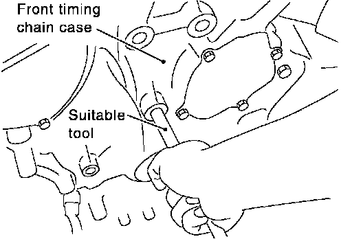 CAUTION: Be careful not to damage front timing chain case.
