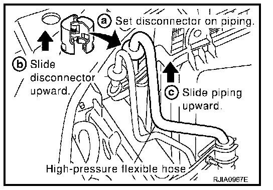 a. Set a disconnector [condenser outlet (SST: 9253089908), condenser inlet (SST: 9253089912)] on A/C piping.