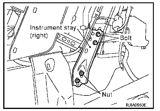 10. Remove mounting nuts and bolts, and then remove instrument stays (driver side and passenger side).
