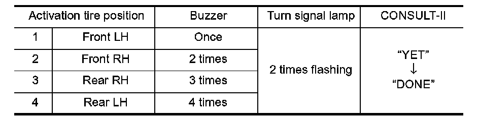 NOTE: Be sure to register the IDs in order from FR LH, FR RH, RR RH, to RR LH, or the self-diagnostic results display will not function properly.