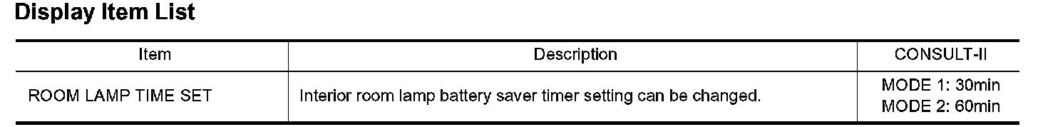 3. Touch "ROOM LAMP BAT SAV SET" on "SELECT WORK ITEM" screen.