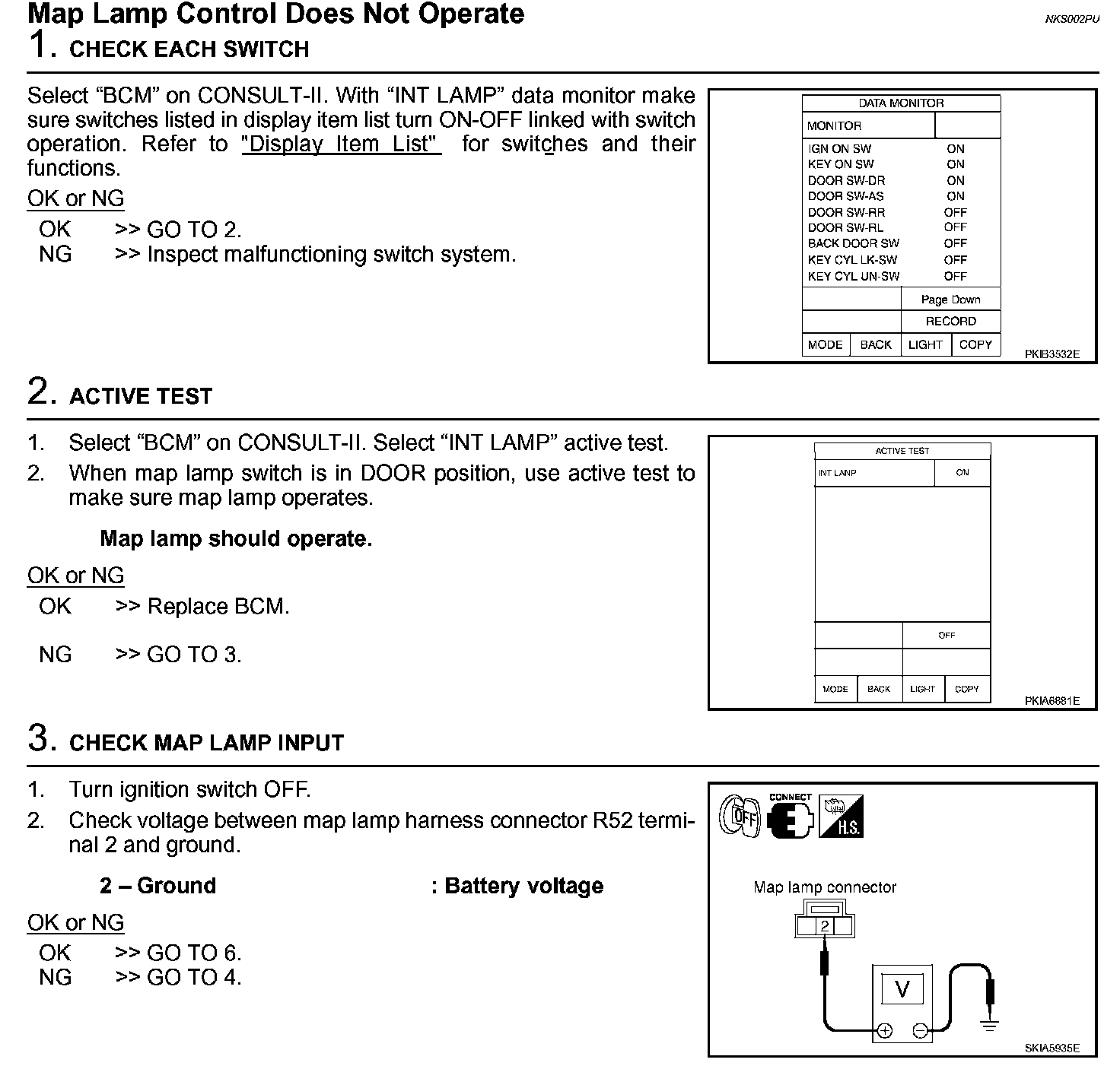 Map Lamp Control Does Not Operate (Steps 1 - 3):