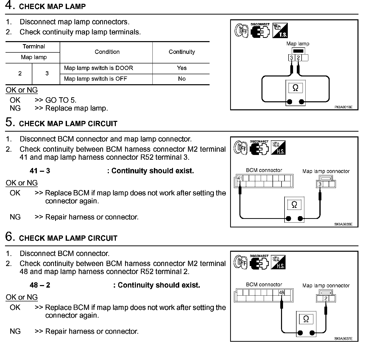 Map Lamp Control Does Not Operate (Steps 4 - 6):