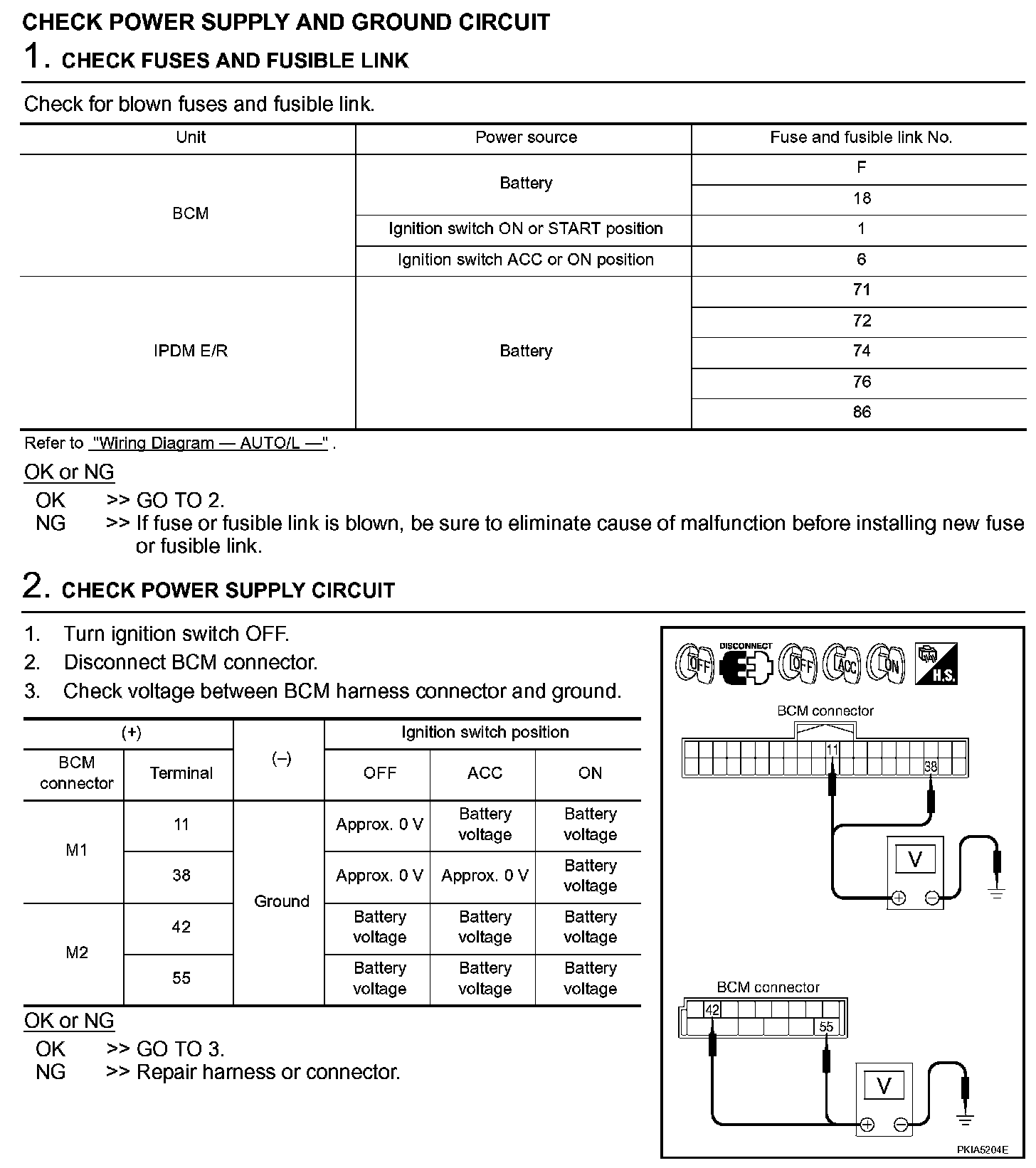 Check Power Supply And Ground Circuit (Steps 1 - 2):