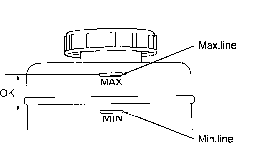 Checking Brake Fluid Level^ Check fluid level in reservoir tank. It should be between Max and Min lines on reservoir tank.