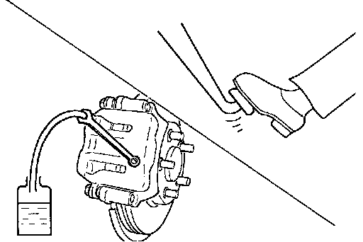 3. Depress brake pedal, loosen bleed valve, and gradually remove brake fluid.