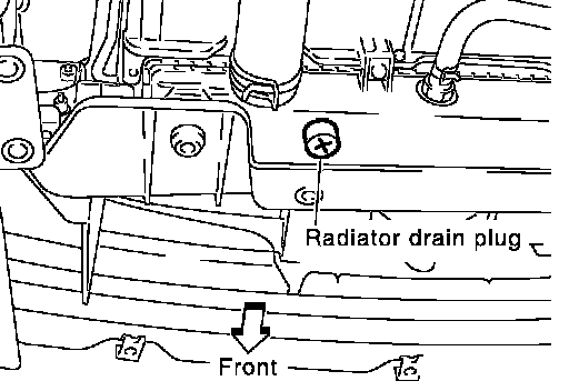 2. Open radiator drain plug at the bottom of radiator, and then remove radiator cap.
