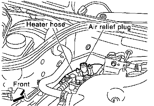 2. Remove air relief plug on heater hose.