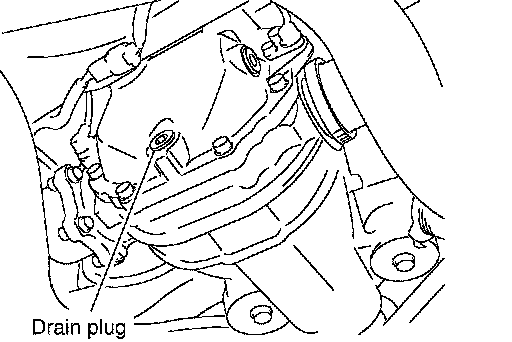 3. Set a gasket on drain plug and install it to final drive assembly and tighten to the specified torque. Refer to RFD-19, "COMPONENTS" (R200 2-pinion) or RFD-39, "COMPONENTS" (R200V LSD).