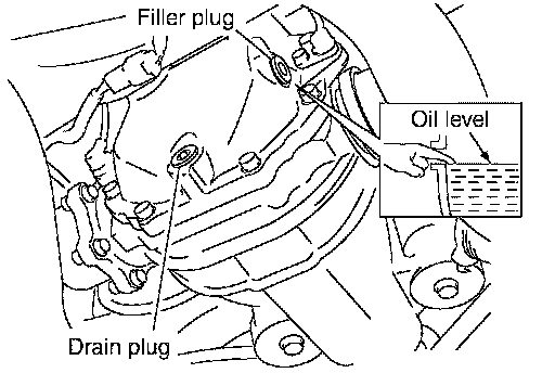 2. After refilling oil, check oil level. Set a gasket to filler plug, then install it to final drive assembly. Refer to RFD-19, "COMPONENTS" (R200 2-pinion) or RFD-39, "COMPONENTS" (R200V LSD).