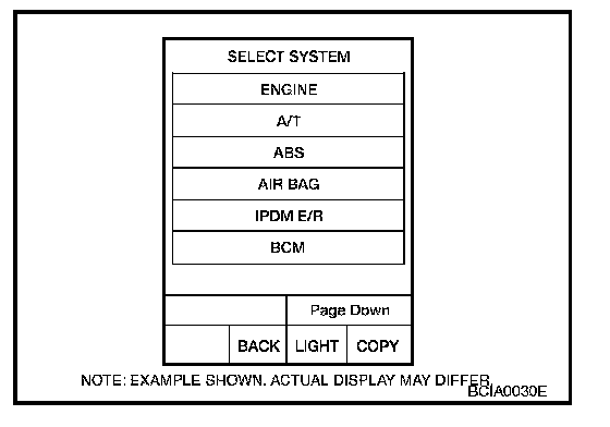 3. Touch "IPDM E/R" on "SELECT SYSTEM" screen.
