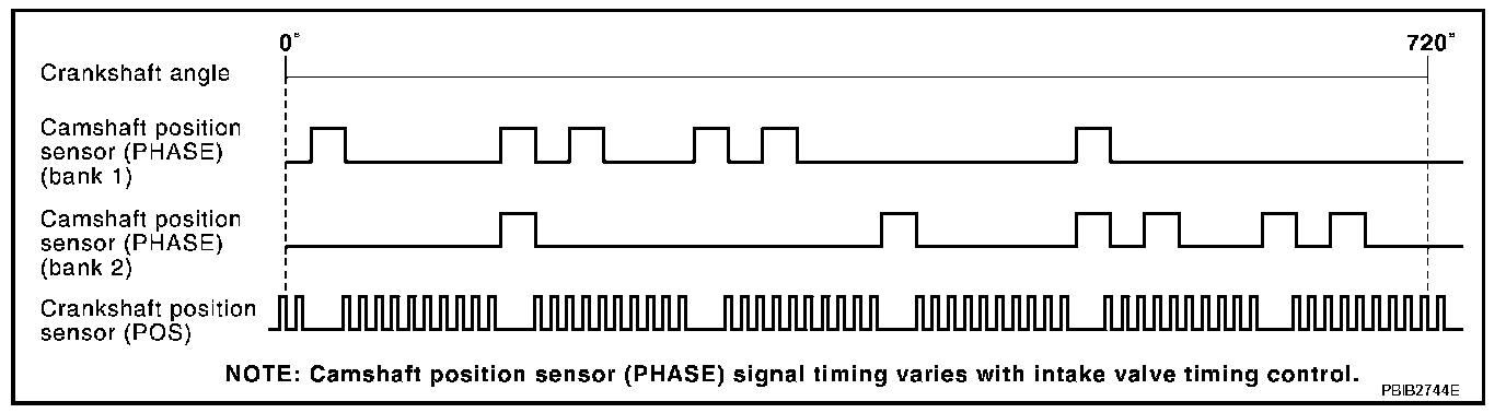 The camshaft position sensor (PHASE) senses the retraction of camshaft (INT) to identify a particular cylinder. The camshaft position sensor (PHASE) senses the piston position.