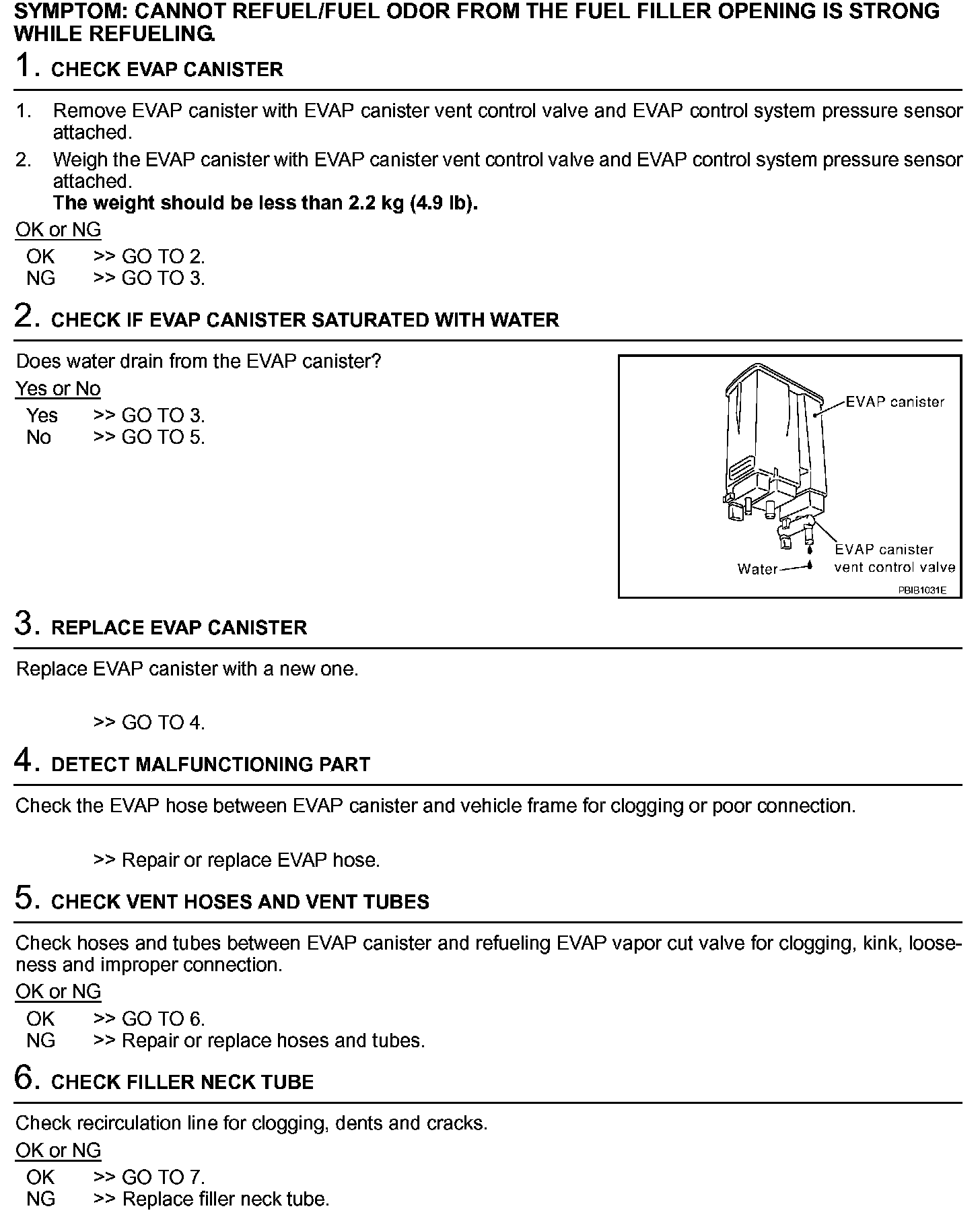Cannot Refuel/Fuel Odor From The Fuel Filler Opening Is Strong While Refuelling (Steps 1 - 6):
