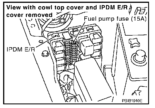 7. Remove fuel pump fuse in IPDM E/R to release fuel pressure.