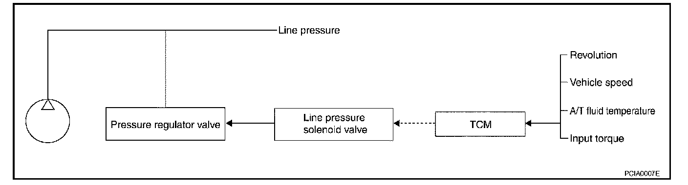 LINE PRESSURE CONTROL IS BASED ON THE TCM LINE PRESSURE CHARACTERISTIC PATTERN