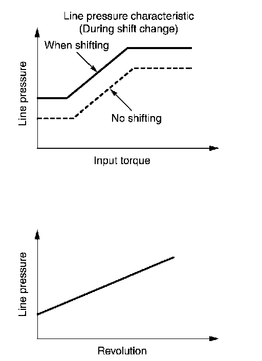 The necessary and adequate line pressure for shift change is set. For this reason, line pressure pattern setting corresponds to input torque and gearshift selection. Also, line pressure characteristic is set according to engine speed, during engine brake operation.