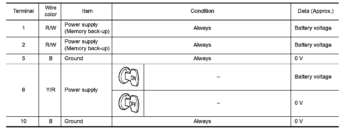 TCM terminals and data are reference value. Measured between each terminal and ground.