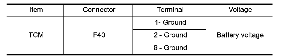 3. Check voltage between A/T assembly harness connector and ground.