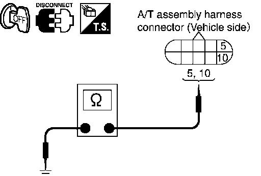 3. Check continuity between A/T assembly harness connector terminals and ground.