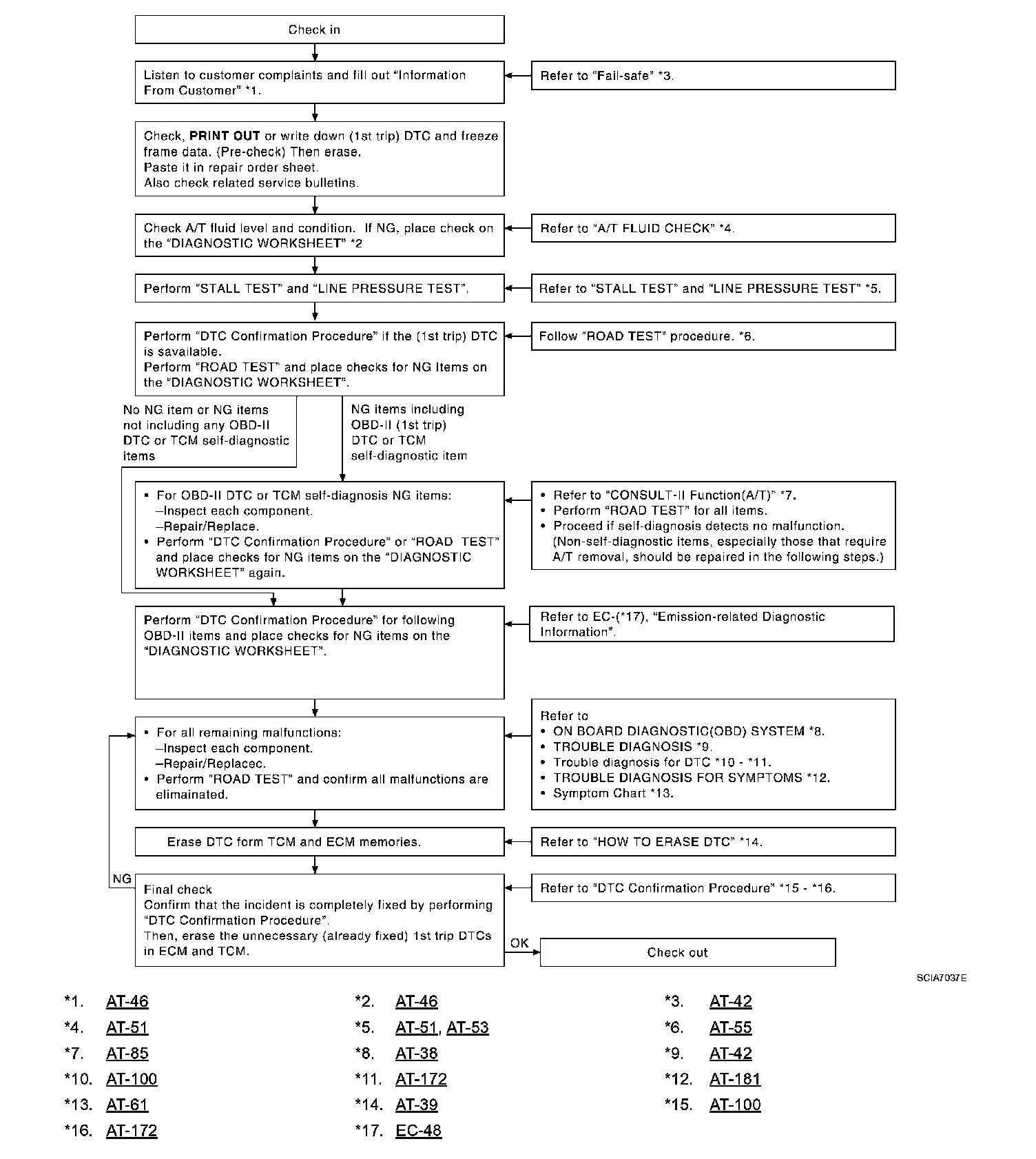 Refer to AT-46, "Diagnostic Worksheet Chart", to perform the best troubleshooting possible. Diagnostic Worksheet