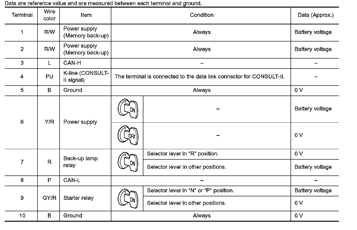 A/T ASSEMBLY HARNESS CONNECTOR TERMINAL LAYOUT: