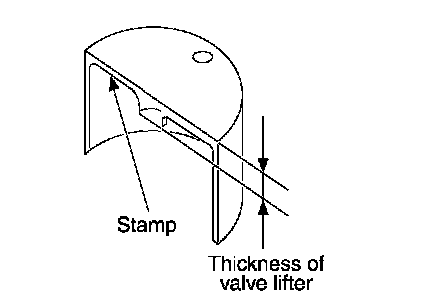 ^ Thickness of new valve lifter can be identified by stamp marks on the reverse side (inside the cylinder).
