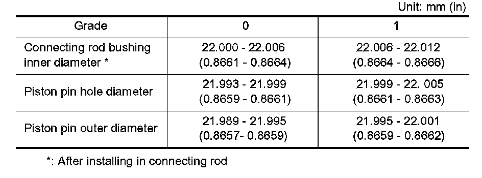 ^ Piston pin (piston pin hole) grade is provided only for the parts installed at the plant. For service parts, no piston pin grades can be selected. (Only 0 grade is available.)