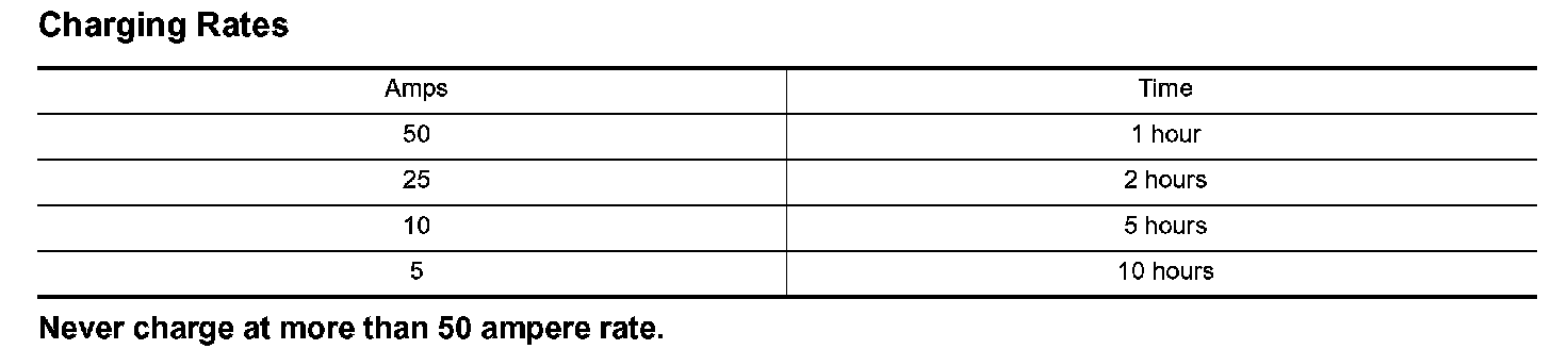 NOTE: The ammeter reading on your battery charger will automatically decrease as the battery charges. This indicates that the voltage of the battery is increasing normally as the state of charge improves. The charging amps indicated above refer to initial charge rate.