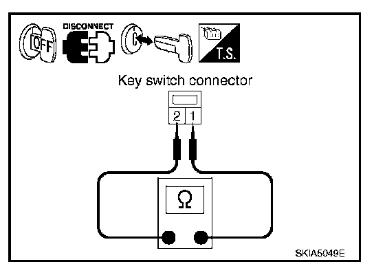 KEY SWITCHCheck continuity between terminals 1 and 2.