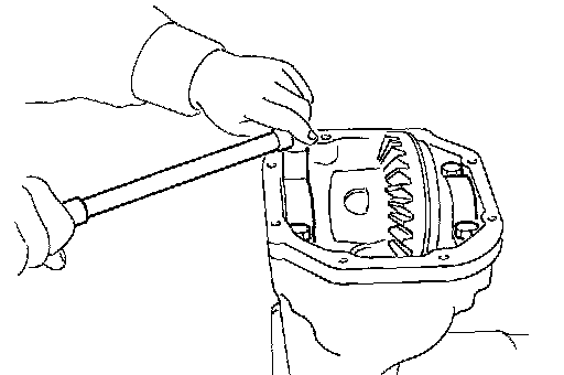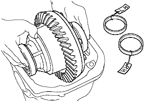 CAUTION: For matching mark, use paint. Do not damage differential case and drive gear.