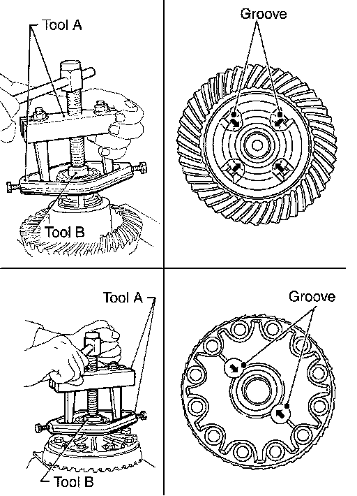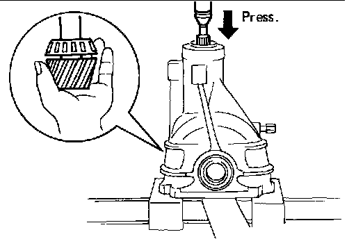 11. Tap pinion front/rear bearing outer races uniformly a brass rod or equivalent to removed.