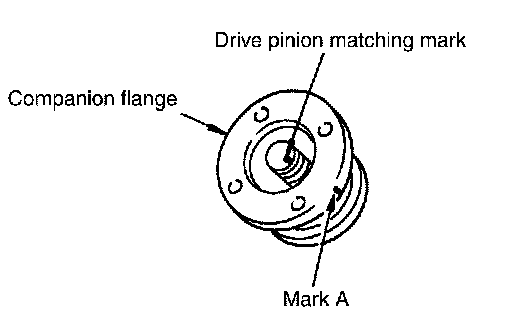 3. Put matching mark on the end of drive pinion. The matching mark should be in line with the matching mark A on companion flange.