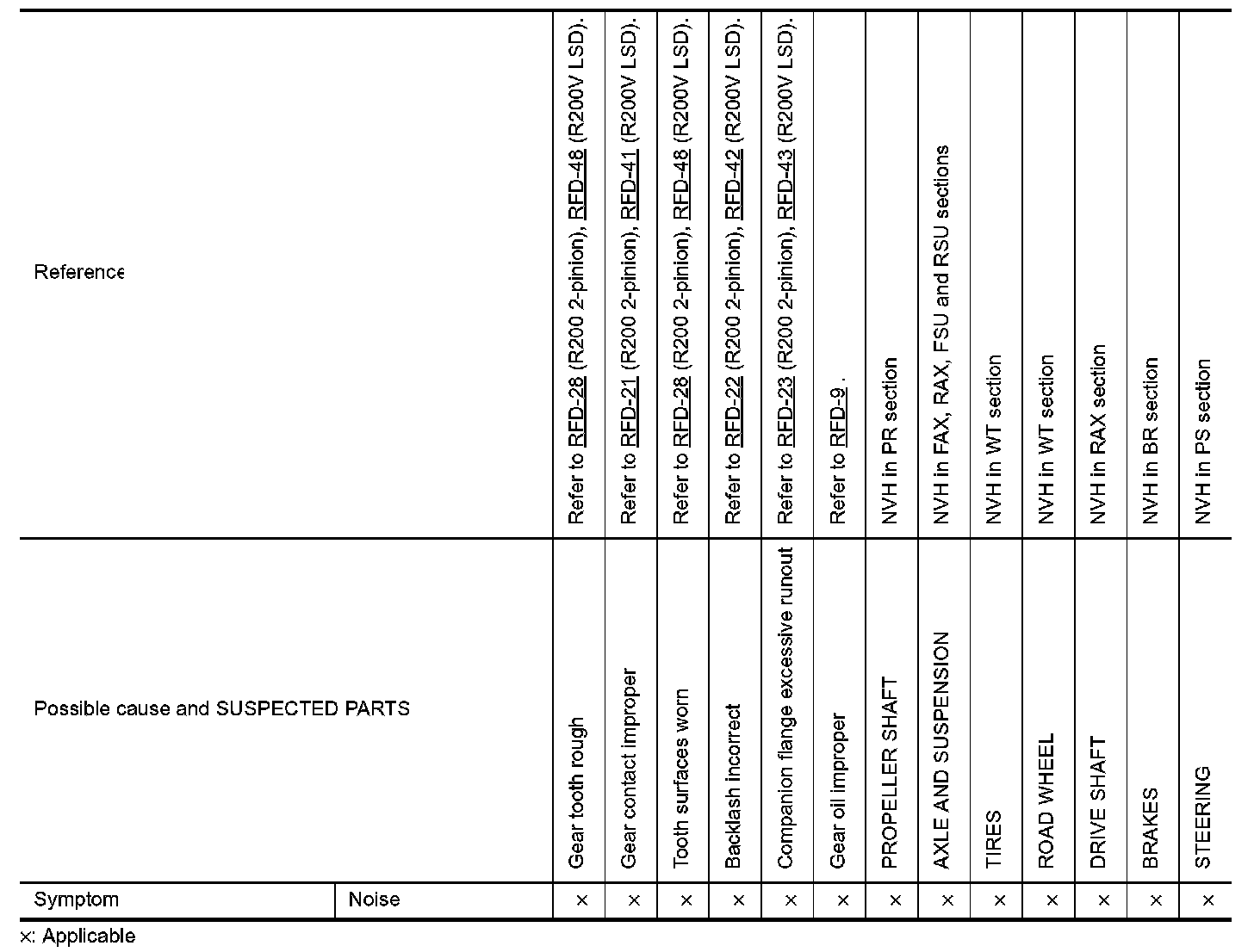 NVH Troubleshooting Chart