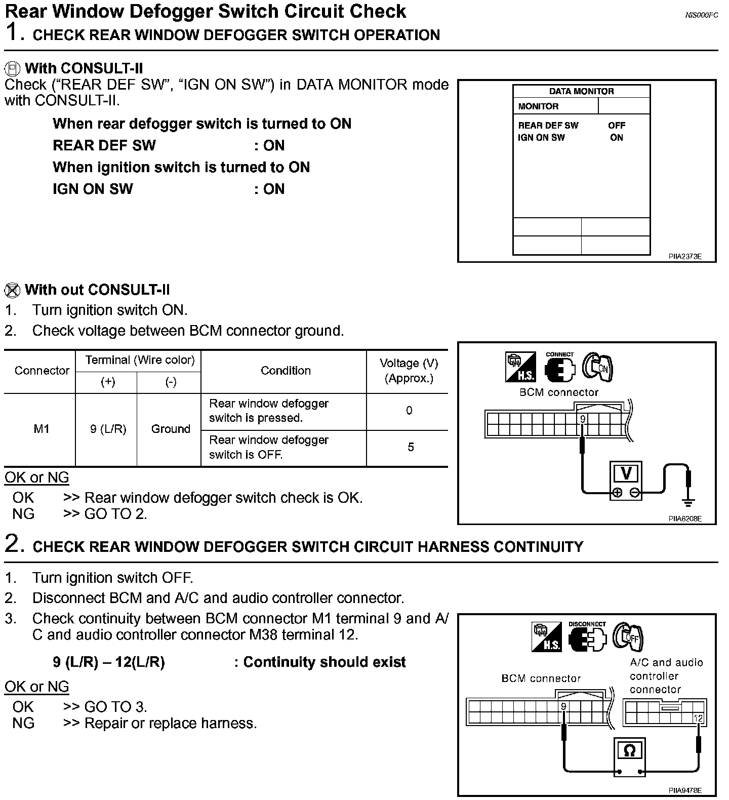 Rear Window Defogger Switch Circuit Check